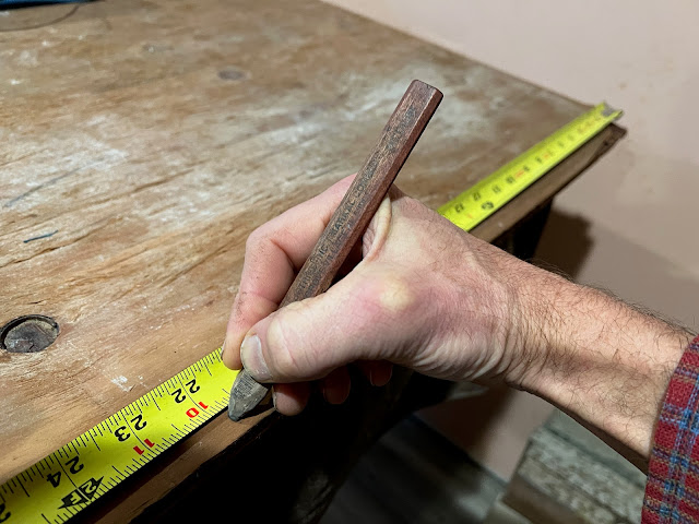I laid the branch down on the marks, orienting it the way it would be hung. (The vacuum came in handy to prop it up. Properly.)